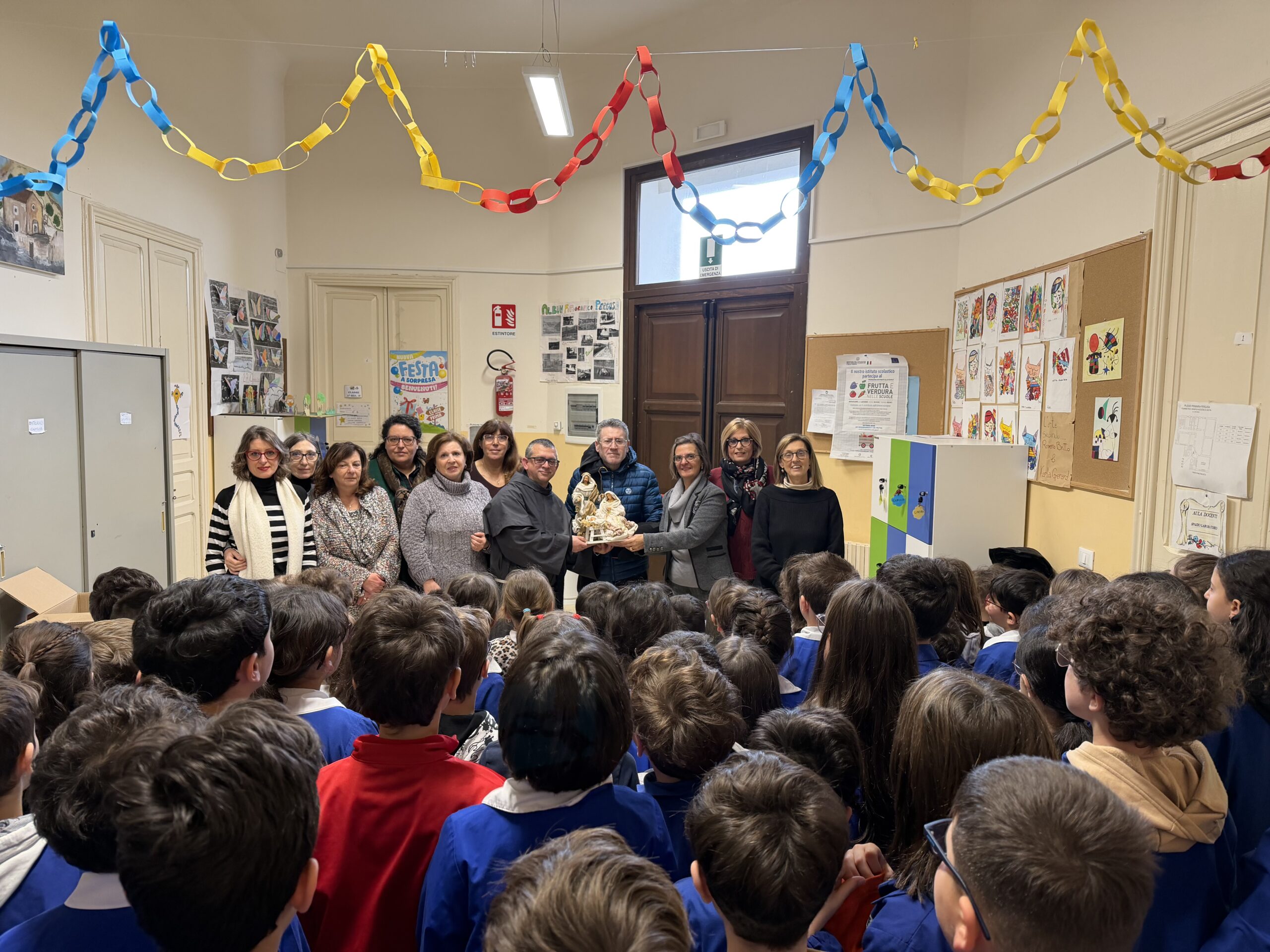 • Il giornalista Mario Pagaria dona un presepe artistico alla scuola elementare di Pergusa